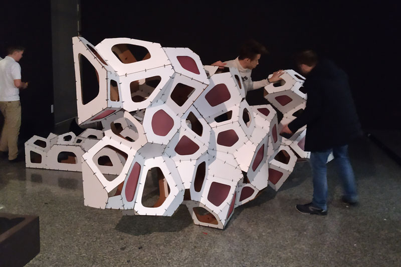El workshop se centró en una familia de geometrías complejas, los poliedros de Voronoi, la cual está relacionada con algunas estructuras naturales como las formaciones de burbujas. Las piezas desarrolladas en el taller fueron unas vidrieras que formaron parte de la exposición “Inspira” ubicada en el vestíbulo de la sede Velluters de la EASD València, en la que se mostraron los trabajos realizados por lxs estudiantes en sus respectivas asignaturas.